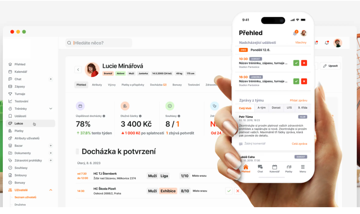 V aplikace nalznete kontakty, platby, docházku na tréninky a další důležité informace.
