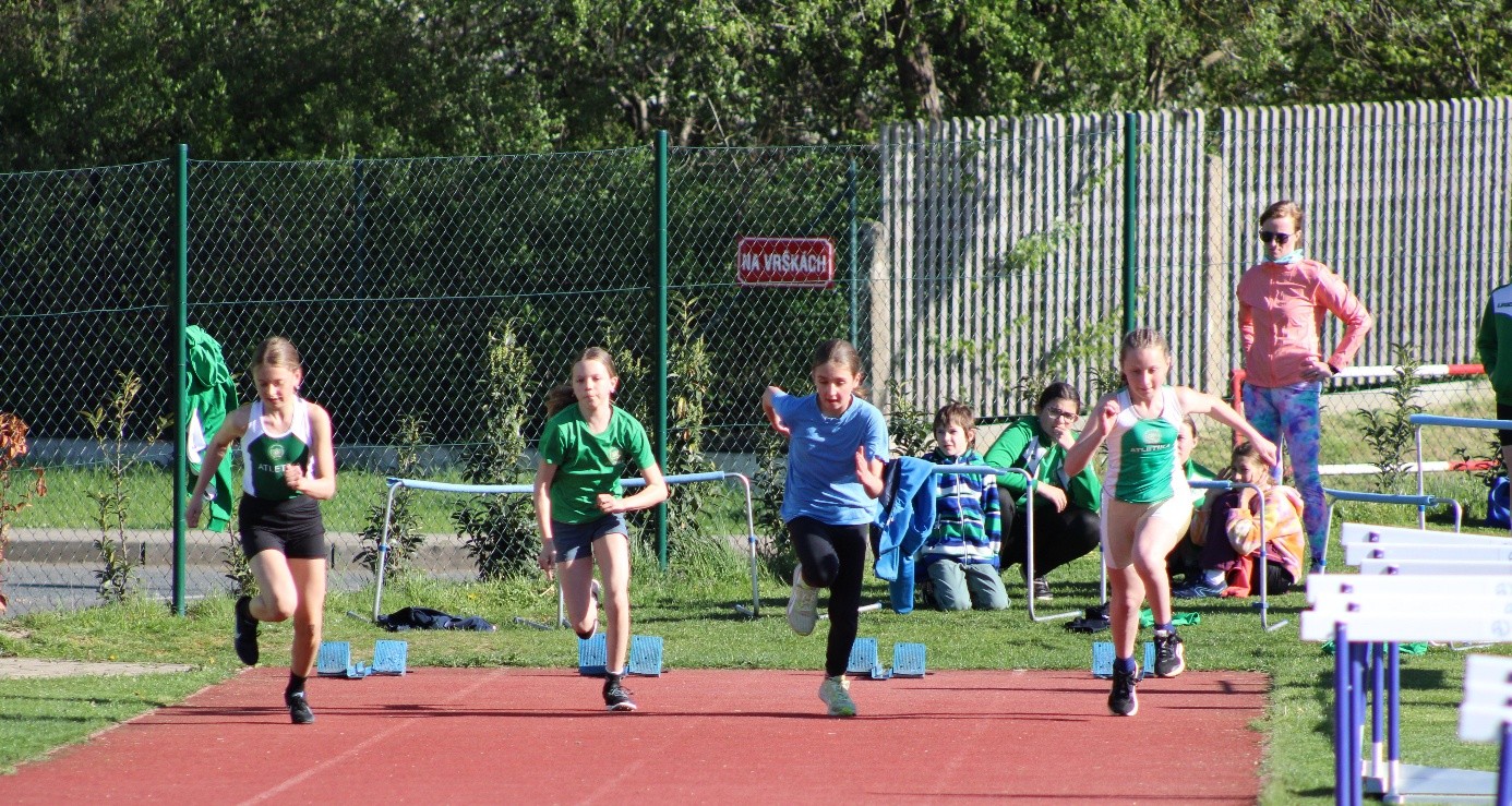 Ve čtvrtek 23.dubna jsme po 2 letech opět uspořádali naše oddílové závody. Letos se zúčastnilo 46 dětí a z toho 38 dětí bylo z našeho oddílu. Ostatní děti dorazily z pozvaných oddílů, jako byly Říčany a Atletika Chuchle. Závodilo se v trojboji a čtyřboji. Trenéři pozvaných oddílů se podíleli rovněž na organizaci. K hladkému průběhu přispělo cca 15 dobrovolníků z oddílu. Závody proběhly podle všech regulí, měli jsme certifikovanou cílovou kameru spolu s větroměrem. Výsledky byly ovšem ovlivněny silným protivětrem, který v ten den panoval, ovšem slunečné počasí tuto nevýhodu vynahradilo. Padl by dokonce rekord oddílu, o který se postaral Vojta Ďopan, ale z důvodu větru jsme nemohli rekord uznat, překážky musely ležet na zemi, aby je vítr neporazil. Vojta zvítězil v kategorii přípravek, která v chlapcích byla nejpočetnější. Odvezl si pohár a diplom a ukázal, že bude platný a přínosný člen našeho týmu přípravek. Na druhém místě se umístil Pepa Jelínek, který tradičně zaperlil v hodu raketkou a hodil 33 m. Třetí byl Adam Štyndl. Vojta Dus si odvezl pomyslnou bramborovou medaili. Překvapil oddílový závodník v hodu raketkou Vítek Pavouček, který atakoval 30 m a obsadil v hodu 3. místo.